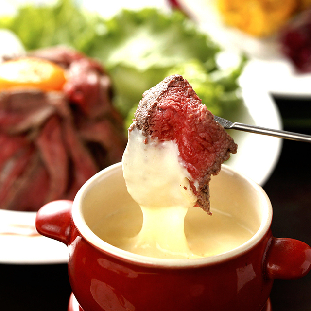 料理は肉寿司とチーズフォンデュ、揚げ物が中心。
