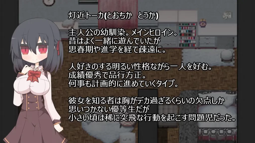 幼馴染の部屋で実験を繰り返すだけのシンプルなゲームです。